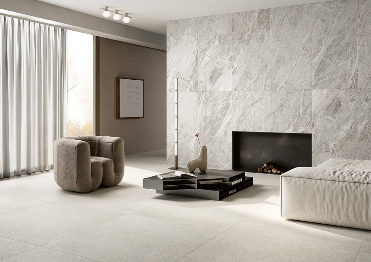 Dostępność w naturalnej palecie kolorystycznej – od kremowego Ivory, przez neutralne Sand i Silver, aż po głęboki Clay i szlachetną Siennę – daje pełną swobodę aranżacyjną. Można je z łatwością zestawiać z innymi materiałami: drewnem, szkłem, betonem, tworząc kompozycje o zrównoważonym, spokojnym charakterze lub mocniejsze, kontrastowe układy.